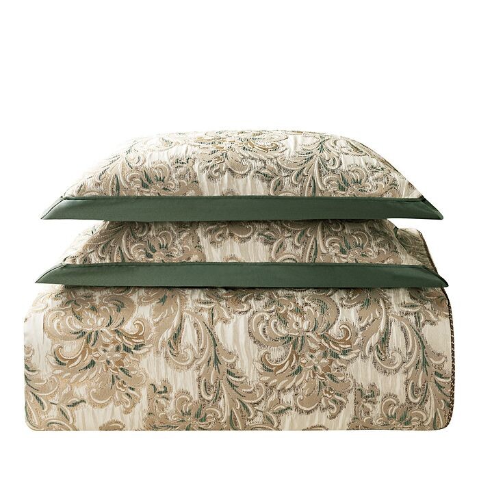 Жаккардовый ансамбль имеет очаровательную складчатую текстуру, украшенную традиционными узорами в оттенках миндаля, античного золота, каштанового и темная сосна. Ромбовидная решетка, акценты из темной сосны и классические завитки придают дизайну величественную привлекательность.