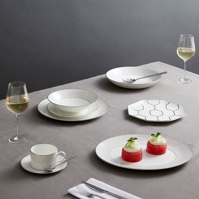 Добавьте в смесь несколько слоев тарелок из коллекции посуды Gio White или Gio Gold компании Wedgwood (продаются отдельно). создайте свой собственный стиль