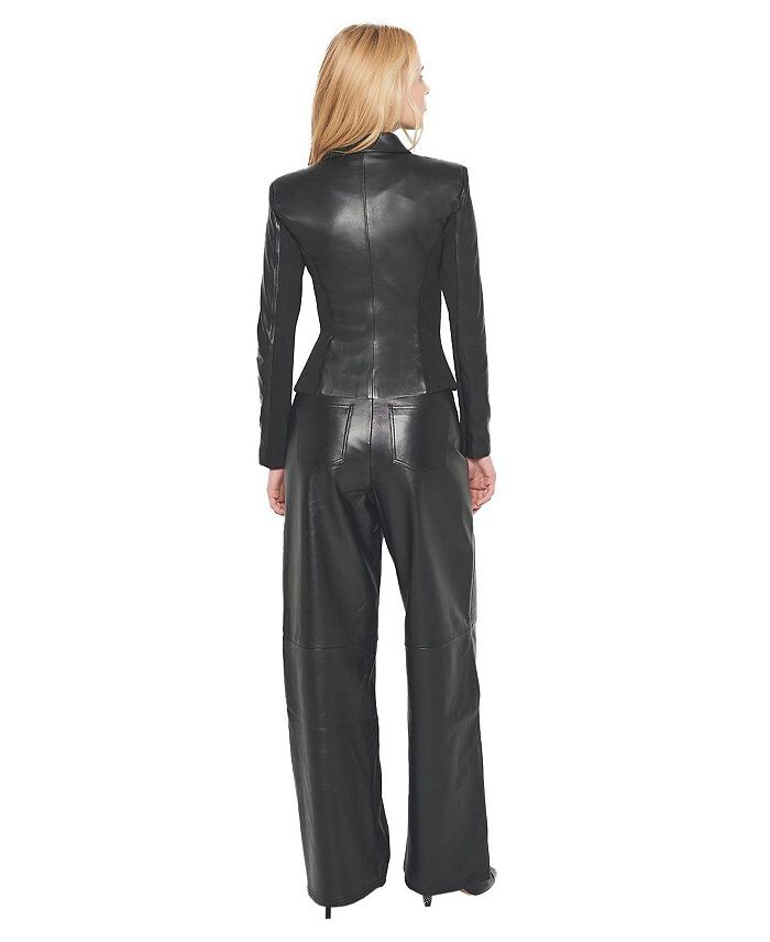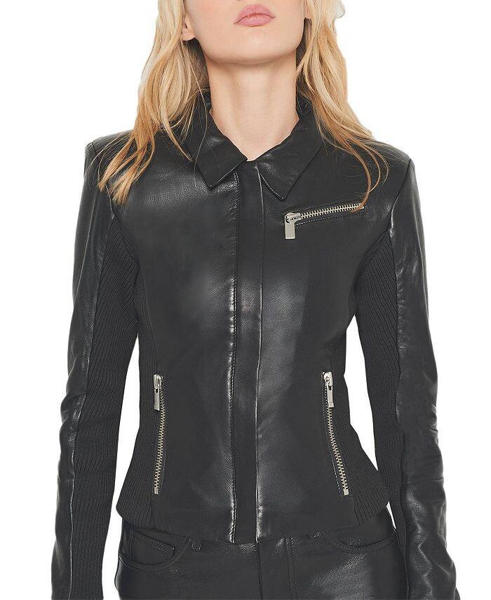 Кожаная куртка Mrs. Smith Upcycled, подчеркивающая ваш силуэт, выполнена из переработанной кожи ягненка и вставок из эластичной рубчатой ​​ткани. Эта куртка создает смелый и уверенный образ. Эта черная кожаная куртка идеально сидит по фигуре: массивные металлические молнии, подплечники и контрастные ребристые панели на рукавах и лифе, плотно облегающие тело. Сочетайте этот стиль с маленьким черным платьем, чтобы создать соблазнительный образ. Этот стиль очень приталенный. Если вы находитесь между размерами, мы предлагаем при необходимости подобрать размер для дополнительного места или заказать обычный размер для индивидуальной подгонки. Наша приверженность устойчивому развитию: мы не используем пластик. Упаковка AS by DF изготовлена ​​из 100% переработанных материалов и на 100% биоразлагаема. Мы сотрудничаем с Ocean Conservancy, чтобы сохранить красоту нашего океана, используя научно обоснованные решения для очистки наших океанов. 10 долларов США от каждого предмета одежды, проданного из нашей коллекции из переработанной кожи, будут переданы в фонд Ocean Conservancy Fit Runs. Полностью на подкладке. Контрастные трикотажные вставки в рубчик на рукавах и лифе. Застежка-молния по центру спереди. Модель — 5–9 лет, одета в ткань американского размера S. Лично: 100% переработанное сырье. Кожа в рубчик: 98,5% полиэстер, 1,5% эластан. Подкладка: 100% переработанный полиэстер. Уход только в химчистке от Leather Professional.