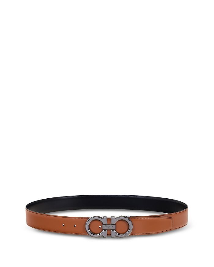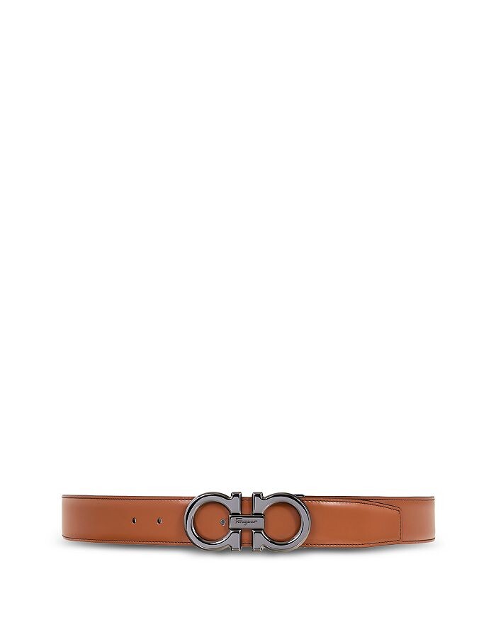 Мужской двусторонний кожаный ремень Ferragamo Double Gancini, коричневый