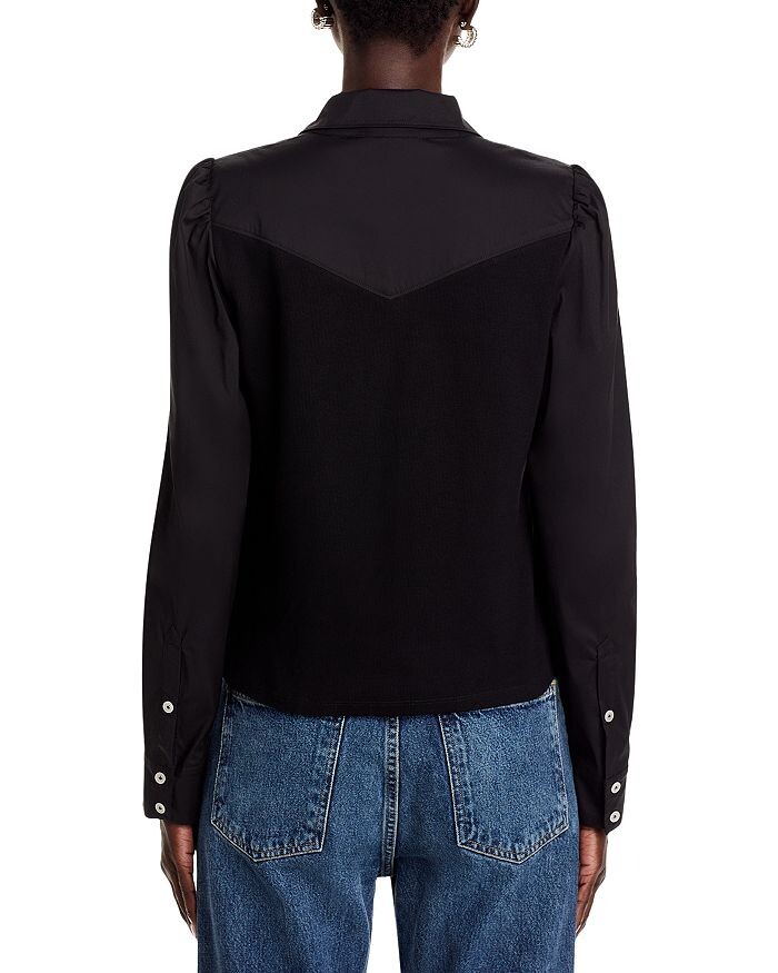 Плечи-буфы, длинные рукава с манжетами на пуговицах