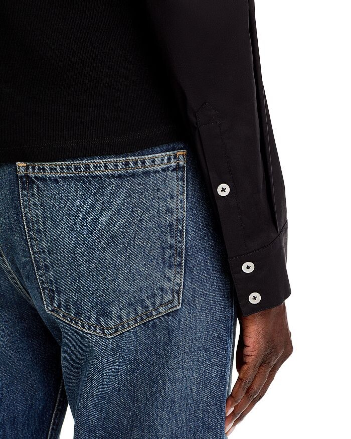 Тканый дизайн с передними трикотажными вставками в рубчик
