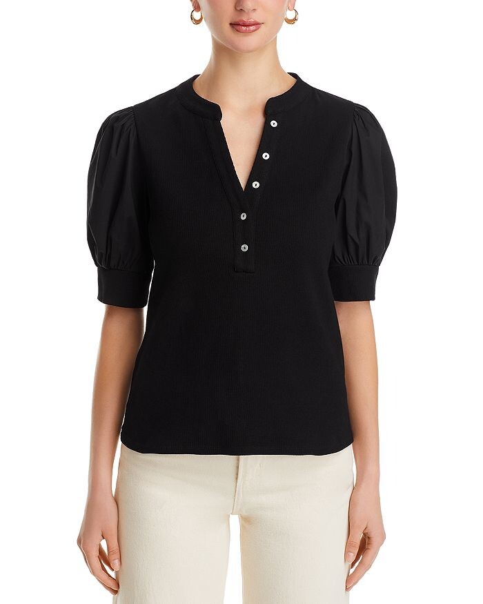 Топ на пуговицах с пышными рукавами и одной нитью Single Thread, черный