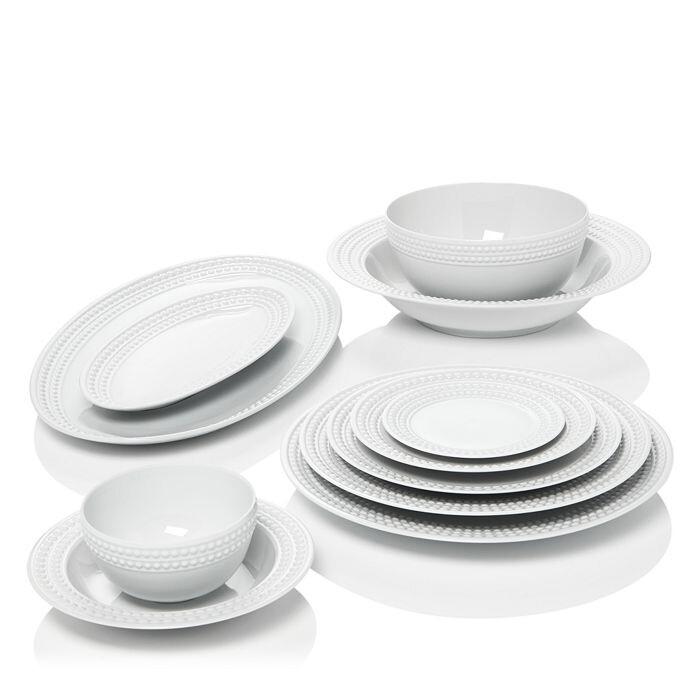 Утонченная красота натурального жемчуга придает элегантность этой элегантной посуде из белого фарфора от L'Objet.