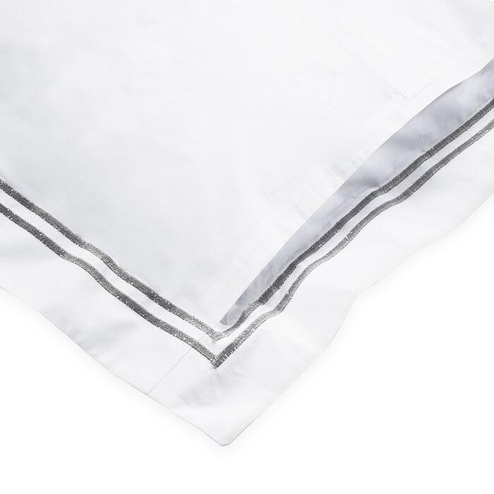 Эта элегантная и роскошная накидка из хлопкового перкаля от Frette, созданная для лучших отелей мира, отличается контрастным двойным рядом вышивок по краям одеяла, накидок, плоских простыней и наволочек.