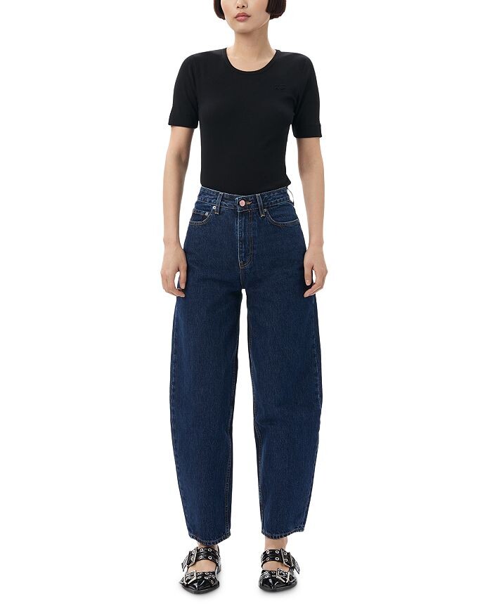 Джинсы GANNI Stary Barrel темно-синего цвета, синий