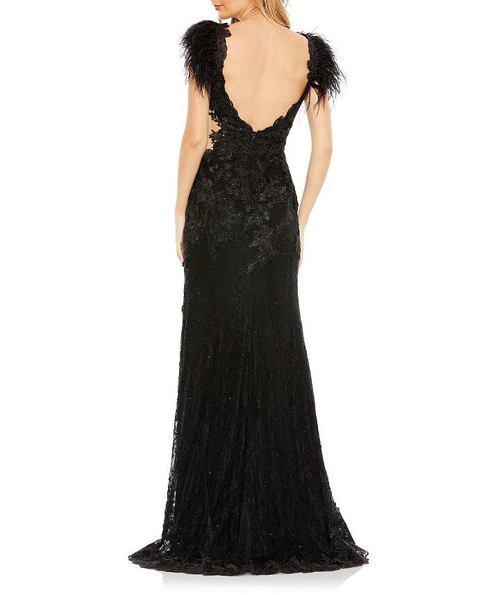 Mac Duggal Кружевное платье с перьями и короткими рукавами, черный