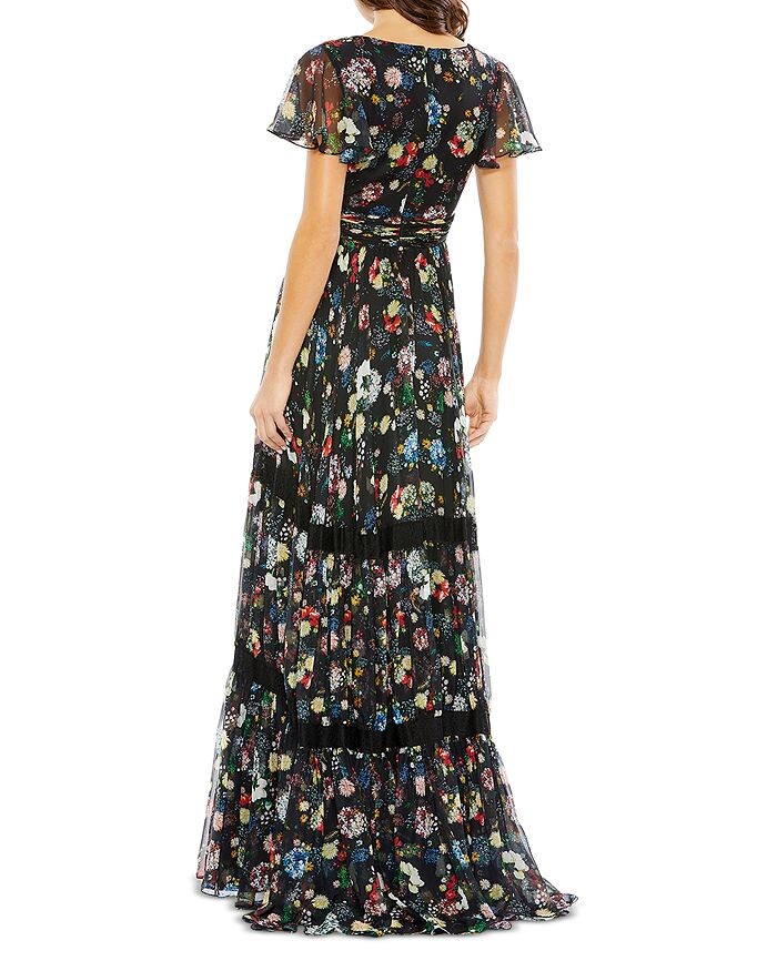 Платье Mac Duggal с глубоким вырезом и цветочным принтом, черный