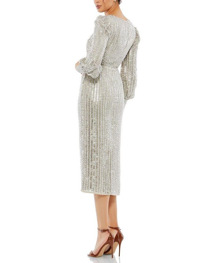 Платье миди с длинными рукавами Mac Duggal, серебряный