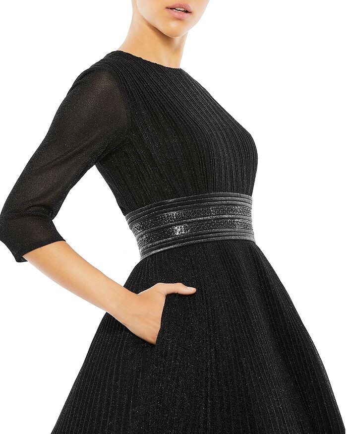 Структурированное бальное платье, Плиссированный лиф, Полупрозрачные рукава 3/4, Украшенный пояс