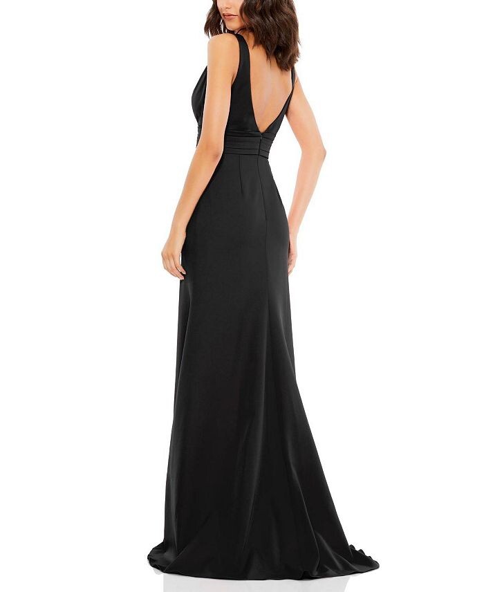 Платье-русалка Mac Duggal без рукавов с V-образным вырезом и бантом, черный