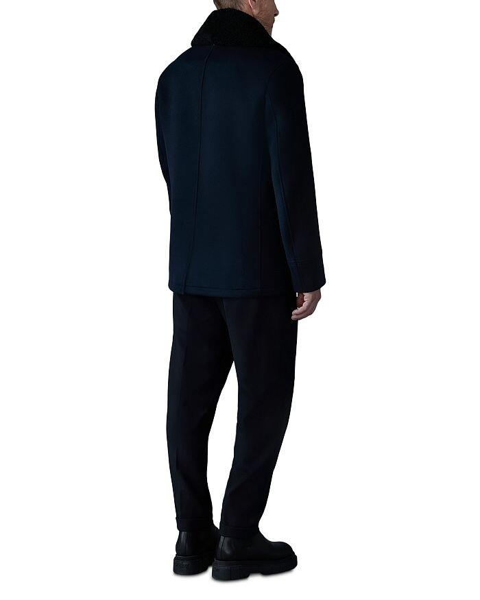 Бушлат из шерстяной дубленки Mackage с воротником из овчины, синий