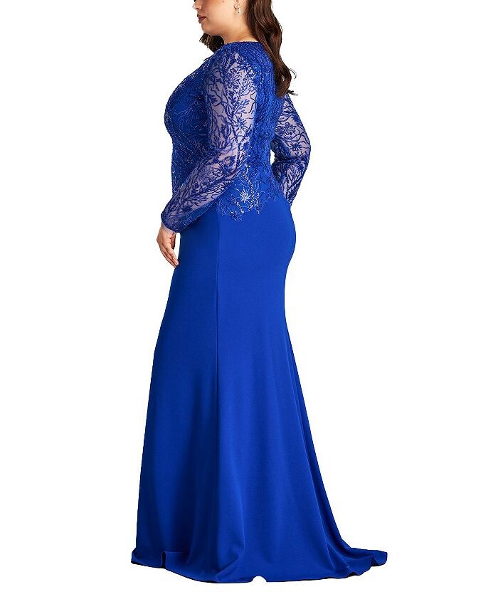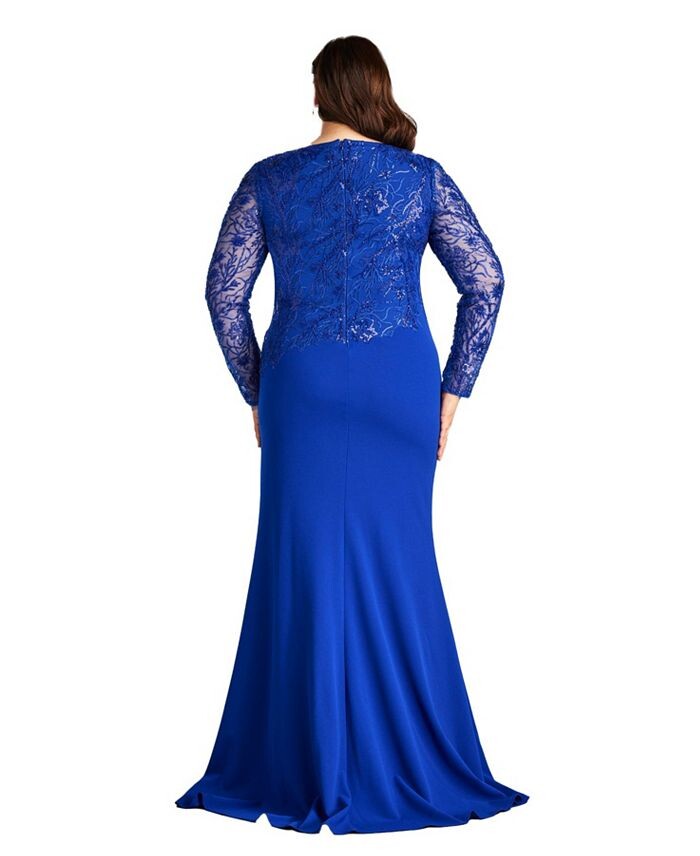 Платье из крепа Tadashi Shoji Ren с вышивкой бисером - Большие размеры, синий