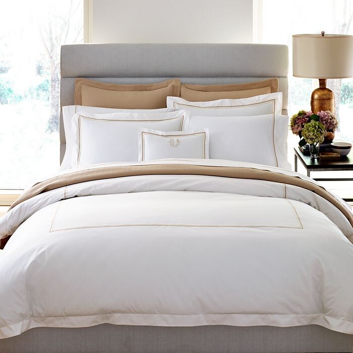 Этот роскошный пододеяльник от Matouk, выполненный из плотного хлопка плотностью 350 нитей, украшен элегантной двойной атласной каймой тональных оттенков.