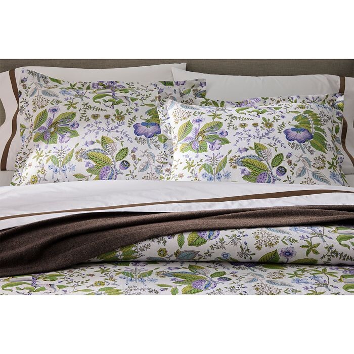 Оживленный яркими цветами и пышной листвой, гранатовый дизайн Шумахера, который присутствует на одном из самых популярных стилей перкаля Matouk, теперь переосмыслен для фирменной линии римского льна.
