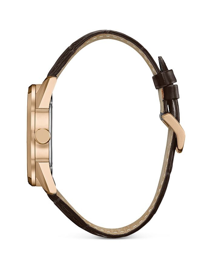 Циферблат из слоновой кости с указателем дня/даты в положении «3 часа»Коричневый ремешок из кожи с тиснением под крокодила