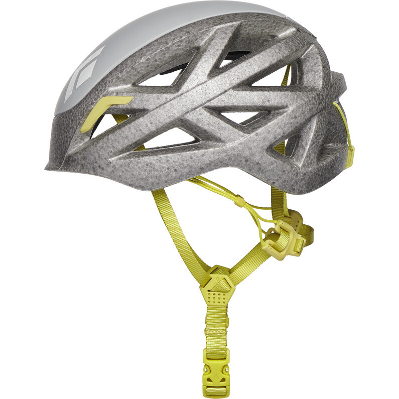 Универсальный шлем для скалолазания и альпинизма состоит из внешней оболочки из поликарбоната и формованного слоя чрезвычайно легкого материала. композитный материал. Шлем впечатляет пенопластом EPP по бокам.