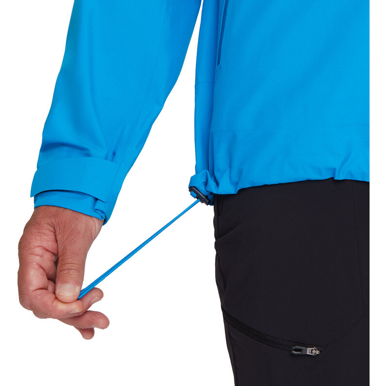 Дождевик оснащен двумя боковыми карманами, которые сохранят ваши ценные вещи в безопасности. Рукава заранее сформированной формы с застежками-липучками позволяют индивидуально регулировать, а при весе всего 355 г эта куртка не будет много весить в вашем рюкзаке.