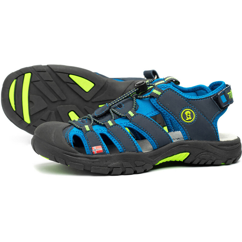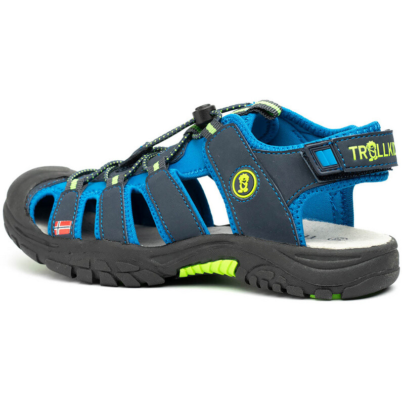 Сандалии Trollkids Kvalvika легкие, дышащие и прочно сидят на ноге благодаря быстросъемной застежке-липучке.