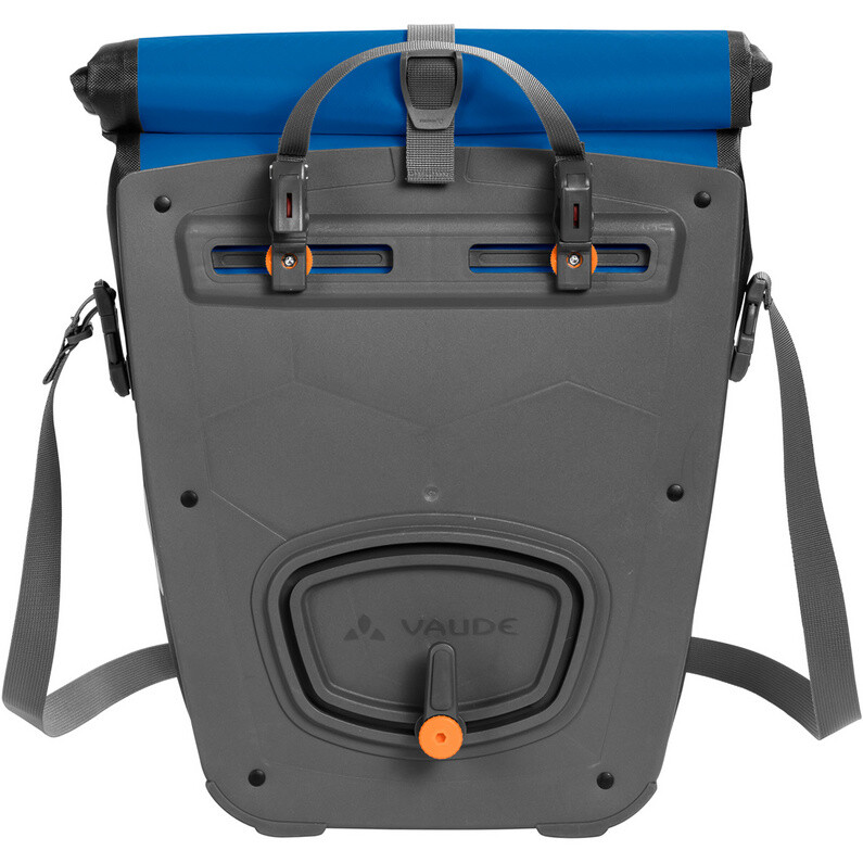 Водонепроницаемая задняя велосипедная сумка Vaude Aqua Back изготовлена ​​из прочного брезента и является идеальным спутником в длительных поездках. Сумки можно подогнать под индивидуальный размер с помощью застежки-пленки и закрыть абсолютно плотно. Простой внутренний карман обеспечивает ясность. Сумка для велосипеда крепится к заднему багажнику с помощью системы QMR 2.0 и прочной спинки, регулируется с помощью простых в использовании маховиков и быстро и легко снимается. Его можно закрепить непосредственно на крючке QMR с помощью велосипедного замка. Светоотражающие элементы обеспечивают хорошую видимость в пробках.