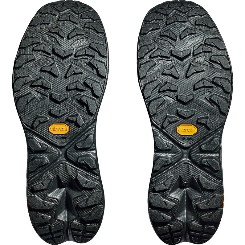Уникальным является сочетание относительно прочного верха и обуви Hoka. подошва, обеспечивающая невероятную амортизацию. Достаточная прочность, плавность качения и бескомпромиссное сцепление подошвы с профилем Vibram Megagrip набирает очки.