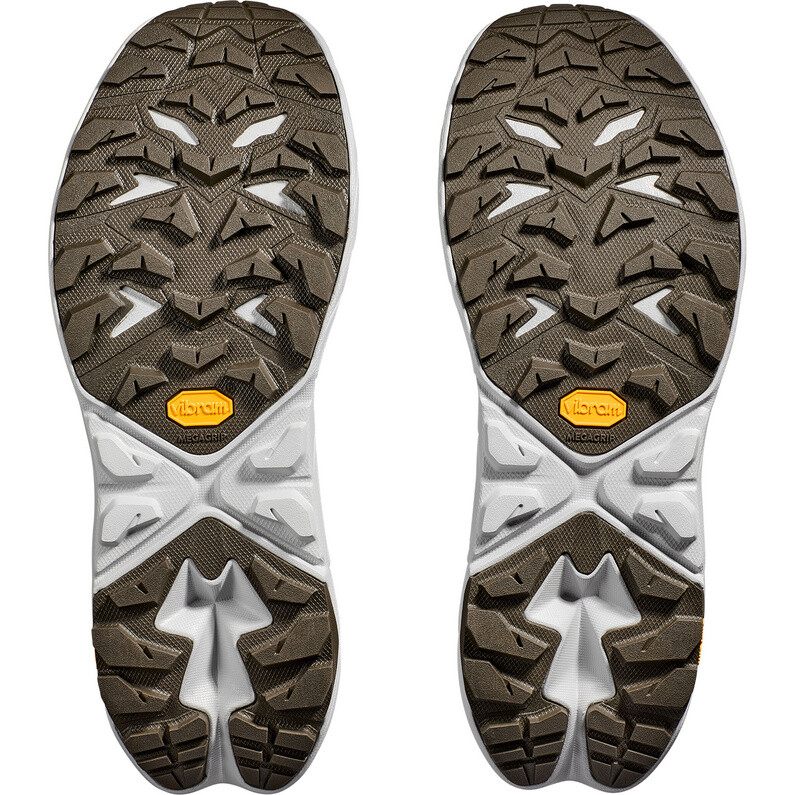 Уникальным является сочетание относительно прочного верха и обуви Hoka. подошва, обеспечивающая невероятную амортизацию. Достаточная прочность, плавность качения и бескомпромиссное сцепление подошвы с профилем Vibram Megagrip набирает очки.