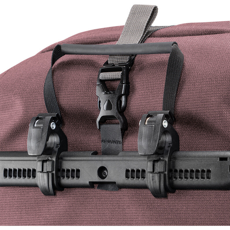 Благодаря практичной системе крепления Quick-Lock2.1, которая поставляется с адаптерами для стоек багажника разного диаметра (8, 10, 12 мм в комплекте, 20 мм опционально) и базовым крючком 16 мм, It можно прикрепить практически к любой стойке для багажа — и сделать это можно в кратчайшие сроки, поскольку после размещения на стойке для велосипеда велосипедную сумку можно прикрепить к ней или снять с нее одной рукой. Рейка-крючок, которая фиксирует сумку на багажнике в нижней части, изготовлена из высококачественного двухкомпонентного материала с более мягким пластиком в точках опоры. Это защищает лакокрасочное покрытие багажника.