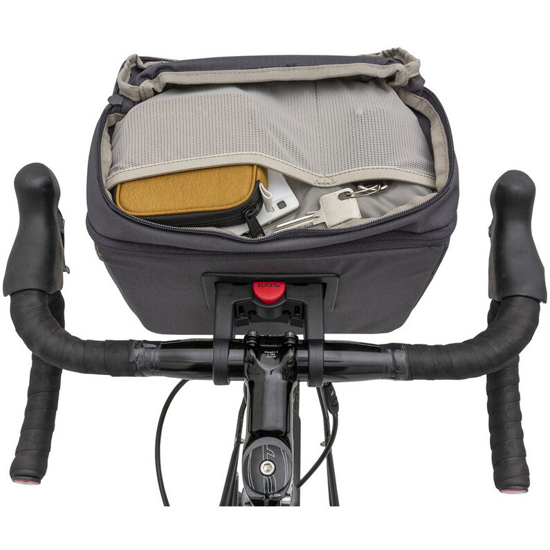 Сумка на руль Vaude Ontour Box L — это сумка на руль для повседневной езды на велосипеде или путешествий. Вы можете легко прикрепить сумку к рулю и снова снять ее. Однако эта система адаптеров не входит в комплект поставки, поэтому вы можете сами решить, какую систему крепления вы хотели бы иметь. Затем сумку можно легко транспортировать с помощью съемного плечевого ремня.