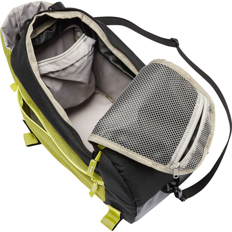 В просторной сумке - а объем можно увеличить на два литра - вы найдете достаточно места для своих вещей . Внутри есть одно отделение на молнии и два дополнительных отделения на молнии снаружи. Если места для хранения недостаточно, можно в шлейф положить что-нибудь еще (эластичный багажник-паук).