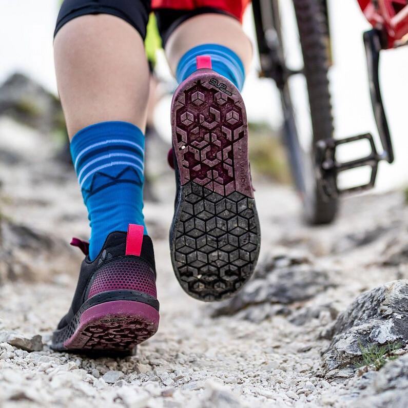 Женские велосипедные туфли Vaude AM Moab Syn. — это универсальные туфли для горного велосипеда с плоскими педалями, обеспечивающие отличное сцепление с дорогой благодаря специальному профилю и материалу подошвы.