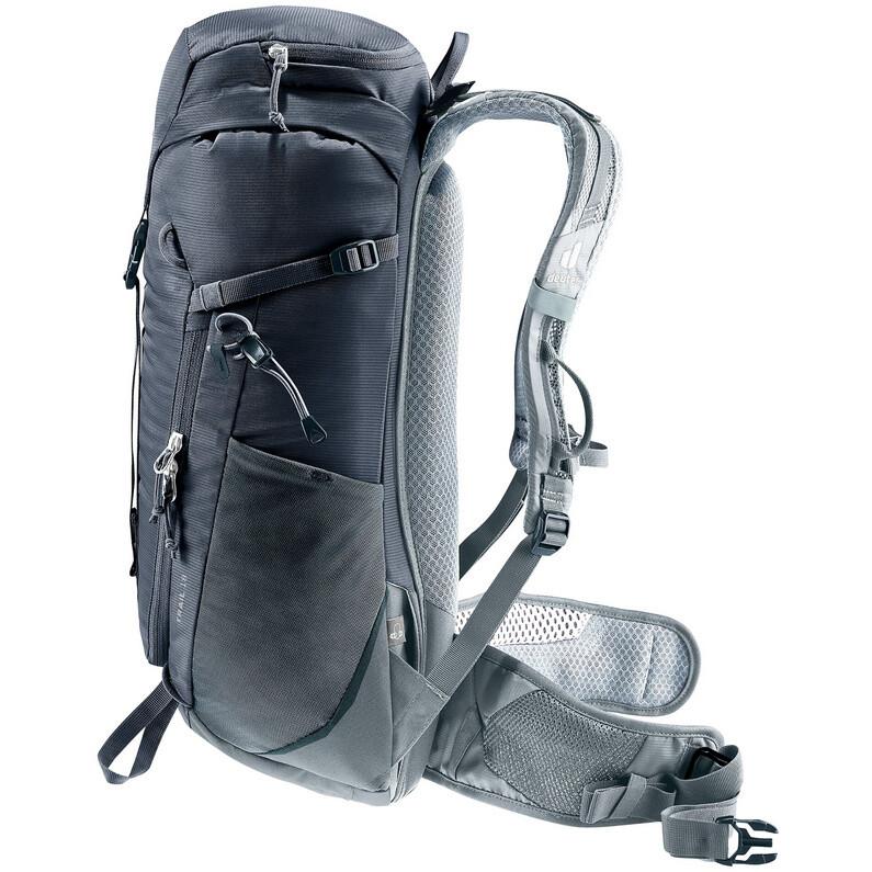 Рюкзак Deuter Trail 18 обеспечивает равномерное распределение веса благодаря гибкой U-образной раме из Delrin. Рюкзак совместим с системой гидратации и имеет легкие сетчатые набедренные плавники эргономичной формы и плечевые ремни с карабином для крепления через феррату. Основной материал рюкзака на 50% состоит из переработанных материалов. Плечевые ремни подвижны и обеспечивают точную посадку. Плавно регулируемый съемный нагрудный ремень оснащен сигнальным свистком. Также доступно внутреннее отделение для ценных вещей со съемным зажимом для ключей и набедренным плавником, регулируемым выдвижением вперед. Ледоруб и держатель для шеста, а также эластичное внутреннее отделение и ремни для регулировки положения дополняют функциональные возможности. Рюкзак оснащен компрессионными ремнями сверху и съемным чехлом от дождя. Крышка рюкзака съемная, основное отделение можно закрепить ремнями. Плоская конструкция крышки обеспечивает хорошее пространство над головой даже в шлеме.