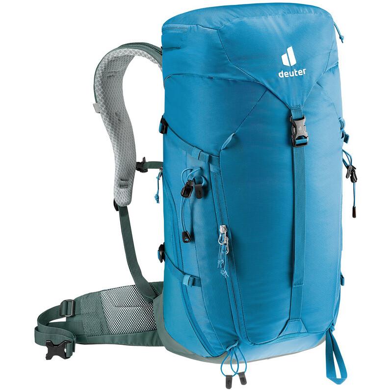 Благодаря легким набедренным плавникам и плечевым ремням эргономичной формы с карабином для комплектов виа феррата рюкзак Trail 30 особенно удобен в ношении. Он также имеет внутреннее отделение для ценных вещей со съемным зажимом для ключей, ледорубом и держателем для шеста. Боковые компрессионные ремни и ремень для регулировки положения сверху обеспечивают еще лучшую посадку. В комплект также входит плавно регулируемый съемный нагрудный ремень. А если погода испортится, не проблема: рюкзак Trail 30 от Deuter оснащен съемным дождевиком. Таким образом, рюкзак подойдет всем, кто ценит хорошую вентиляцию и ищет рюкзак для скалолазания или пеших прогулок, который идеально адаптируется к вашему телу.