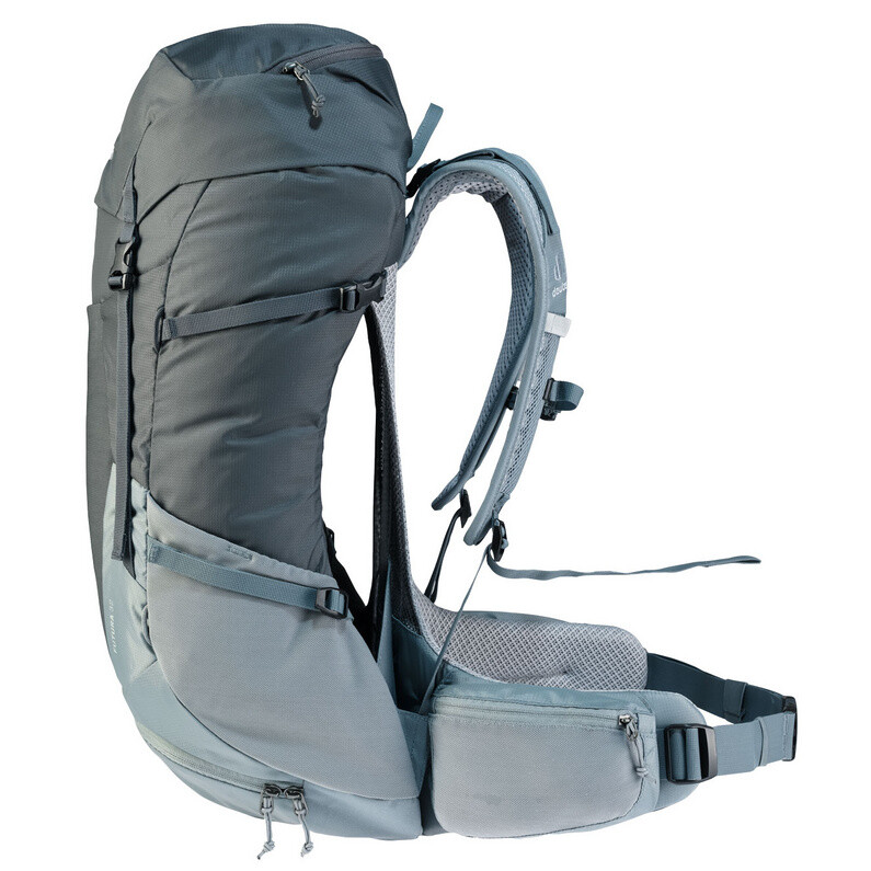 Рюкзак Deuter Futura 32 имеет просторное основное отделение и не скуп на детали. На борту также имеется плавно регулируемый нагрудный ремень, а также эластичные боковые карманы, съемный дождевик и держатель для шеста. Рюкзак также заслуживает внимания благодаря удобным набедренным плавникам, которые украшены прикрепленными карманами на молнии. В отдельном нижнем отделении есть место, например, для Влажное белье или летний спальный мешок, а также просторные карманы на крышках, обеспечивающие порядок и быстрый обзор, когда вы в пути.
