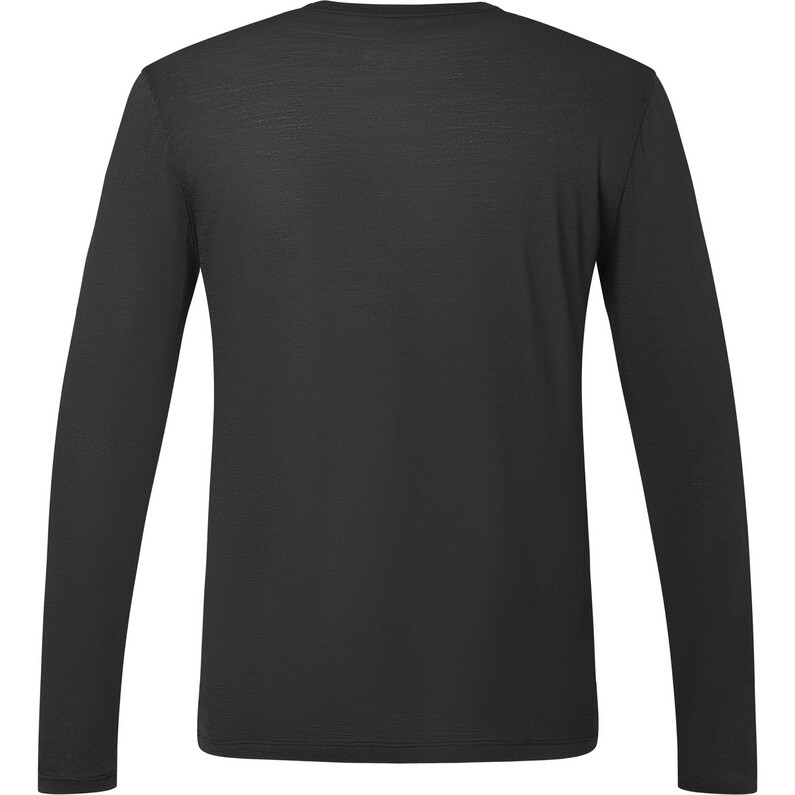 Функциональные волокна регулируют температуру вашего тела даже во время нагрузки, поскольку они быстро отводят излишки тепла и быстро сохнут. Ткань из мериносовой шерсти пропускает воздух, не имеет запаха, изготовлена из возобновляемого сырья контролируемого происхождения и имеет хорошую защиту от ультрафиолета. Таким образом, эта рубашка с длинными рукавами поможет вам во многих случаях.