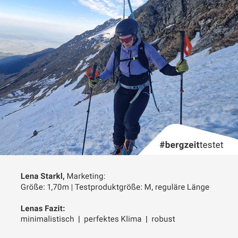 Вывод тестировщика Bergzeit Лены:«Лыжный туристический костюм Punta Berrino минималистичный и обеспечивает идеальный климат на подъеме и спуске, как в холод, так и в жару. Вот так весело кататься на лыжах!»