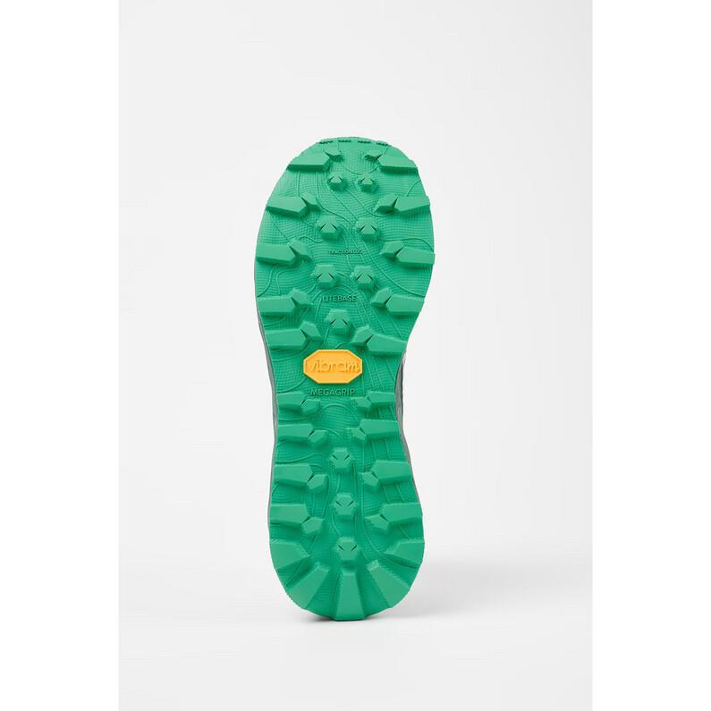 Для наилучшего сцепления даже в самых сложных условиях в обуви по-прежнему используется резина Vibram Megagrip. покрытие нанесено на подошву Vibram Litebase. Шпильки длиной 5 мм вгрызаются в землю. Толщина подошвы уменьшена на 50 %, что помогает снизить вес Tomir.