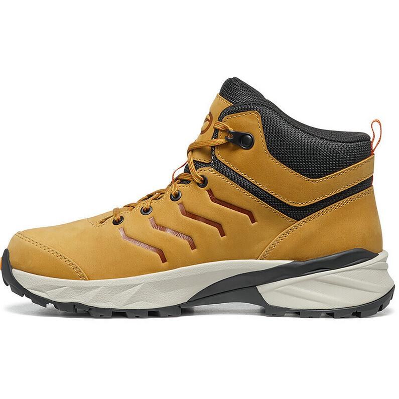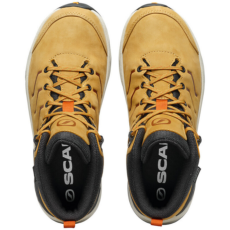 Благодаря верхнему материалу из высококачественной кожи нубука он предлагает комфорт и надежность в одном. Средний крой также защищает лодыжки от влаги. Говоря о защите: Скарпа снабдил повседневные кроссовки резиновым покрытием с приподнятым носком, чтобы у острых камней, лежащих на тропе, не было шансов. Так что эту обувь можно использовать и в походе-двух.