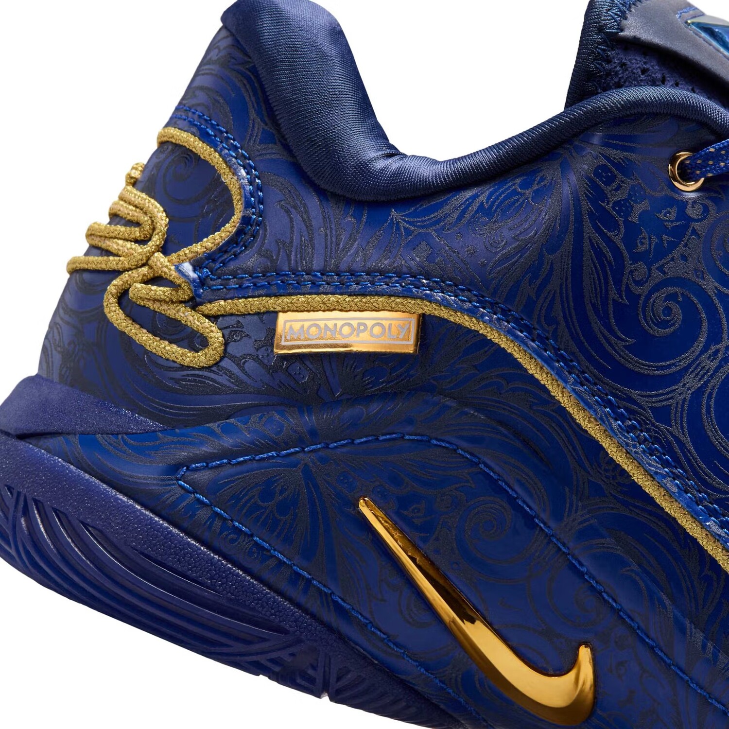 Любители «Монополии» сразу же узнают оттенок «Deep Royal Blue», который окутывает обувь, представляя культовые Boardwalk и Park Place - два самых дорогих участка в игре. Этот насыщенный цвет дополняют детали с лазерной гравировкой, которые подчеркивают эстетику премиум-класса, а абстрактная обработка нанесена на все три основные части верха. В дополнение к изысканной теме нижняя часть Swoosh, выполненная в цвете «Metallic Gold», а также отделка еще больше подчеркивают дизайн, придавая ему элегантность высокого класса. В дополнение к этим ярким деталям на боковой четверти красуется брендинг «Монополия», подчеркивающий связь с любимой настольной игрой.