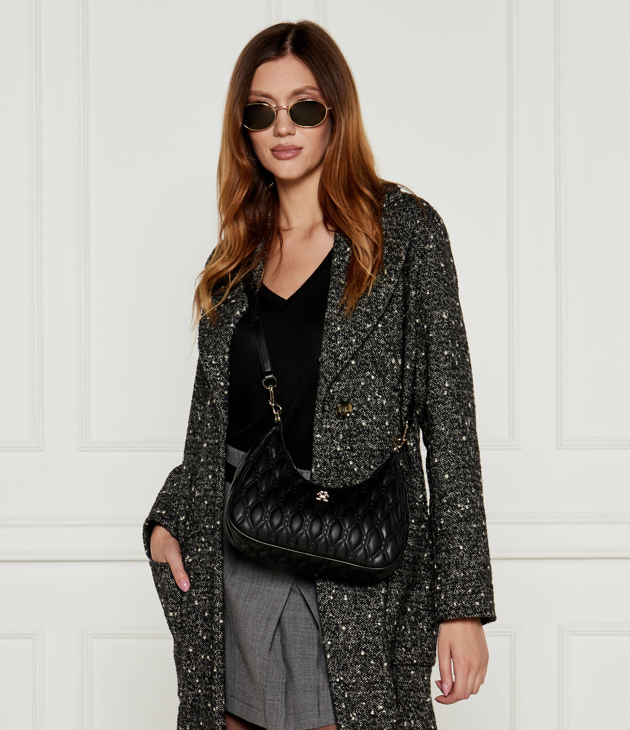 Сумка через плечо женская Tommy Hilfiger стеганая с монограммой, черный 11 993₽