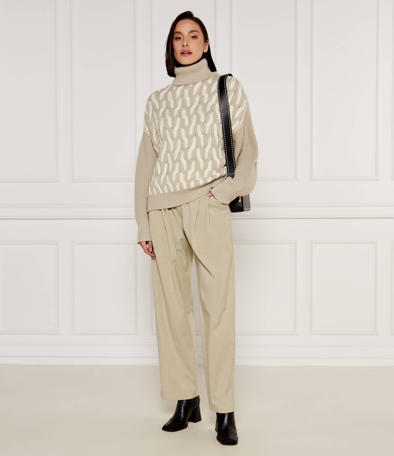 Свитер из шерсти BOSS BLACK Ferdolia Regular Fit, бежевый