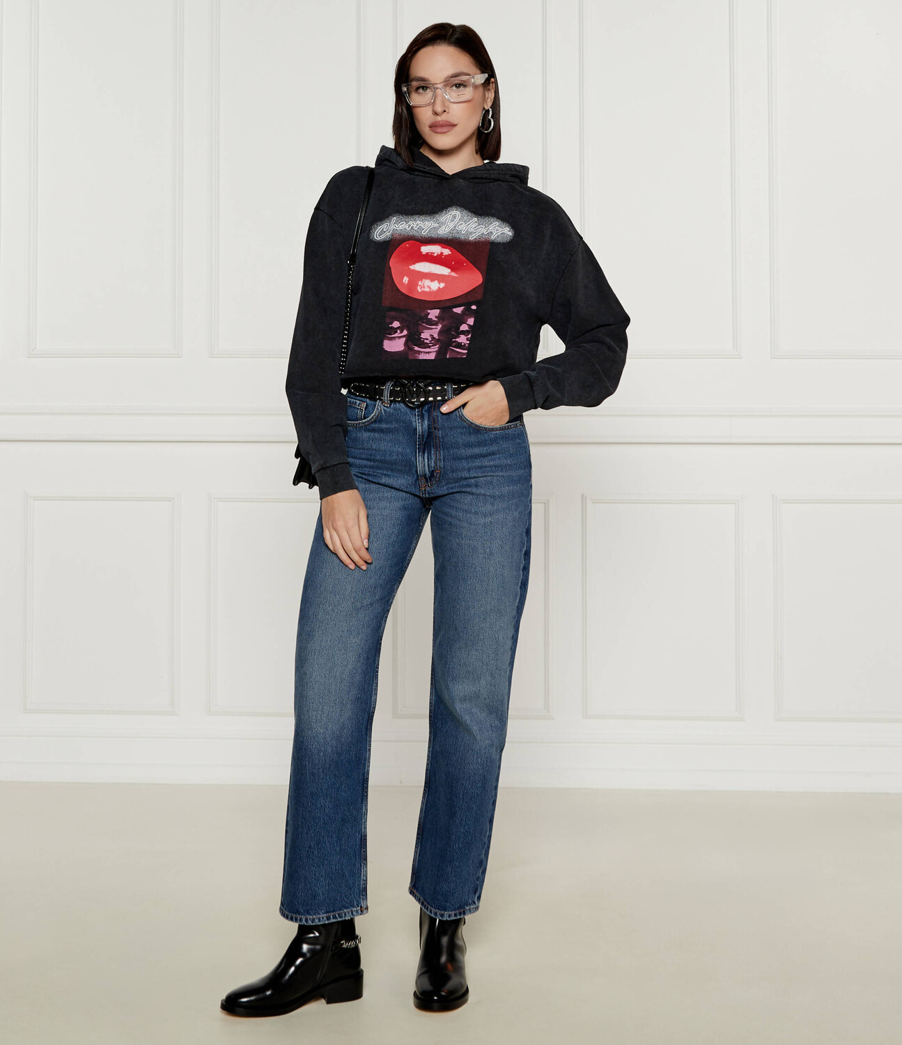 Толстовка HUGO Dephana_3 Cropped Fit, черный