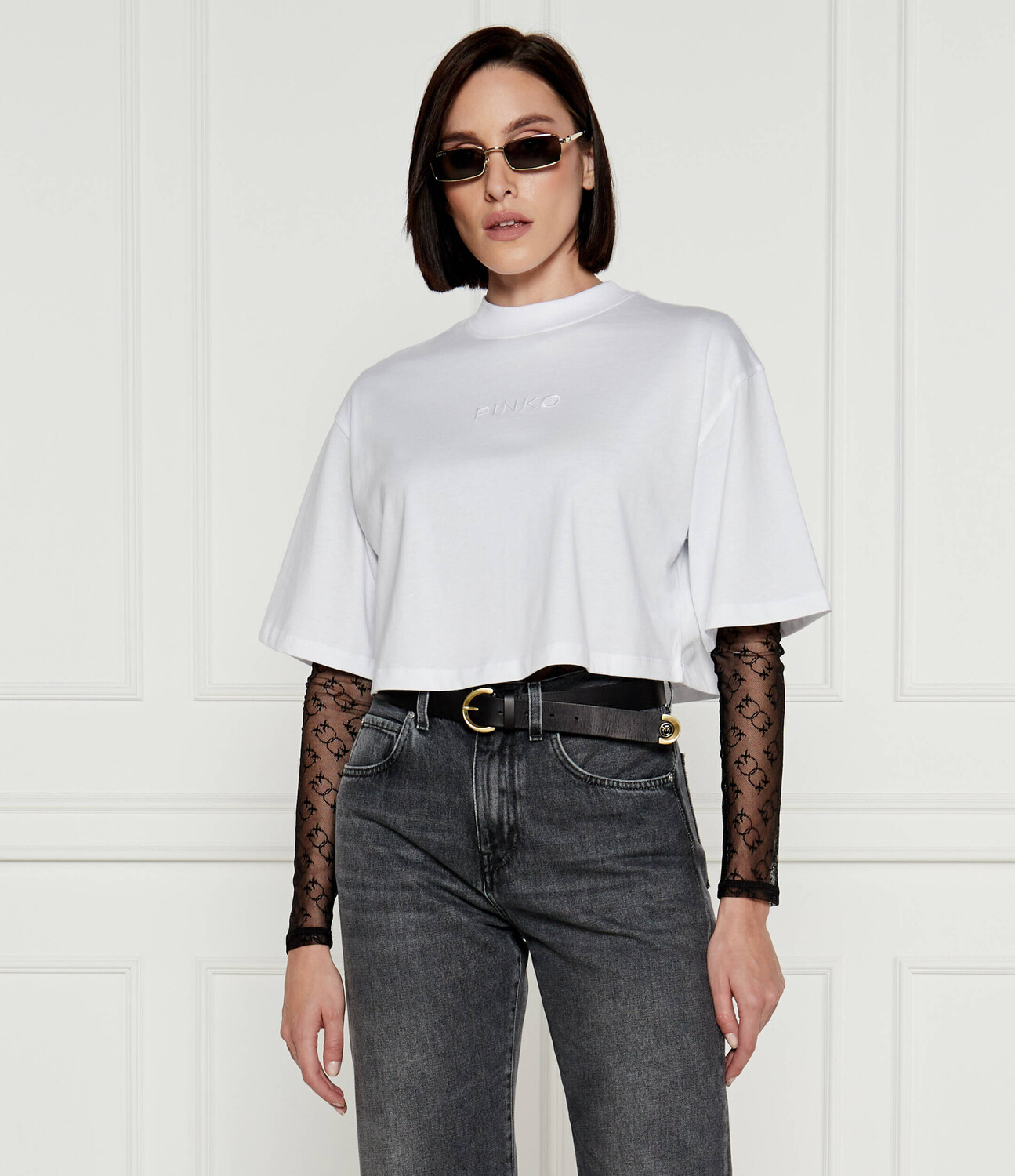 Футболка Pinko Cropped Fit, белый