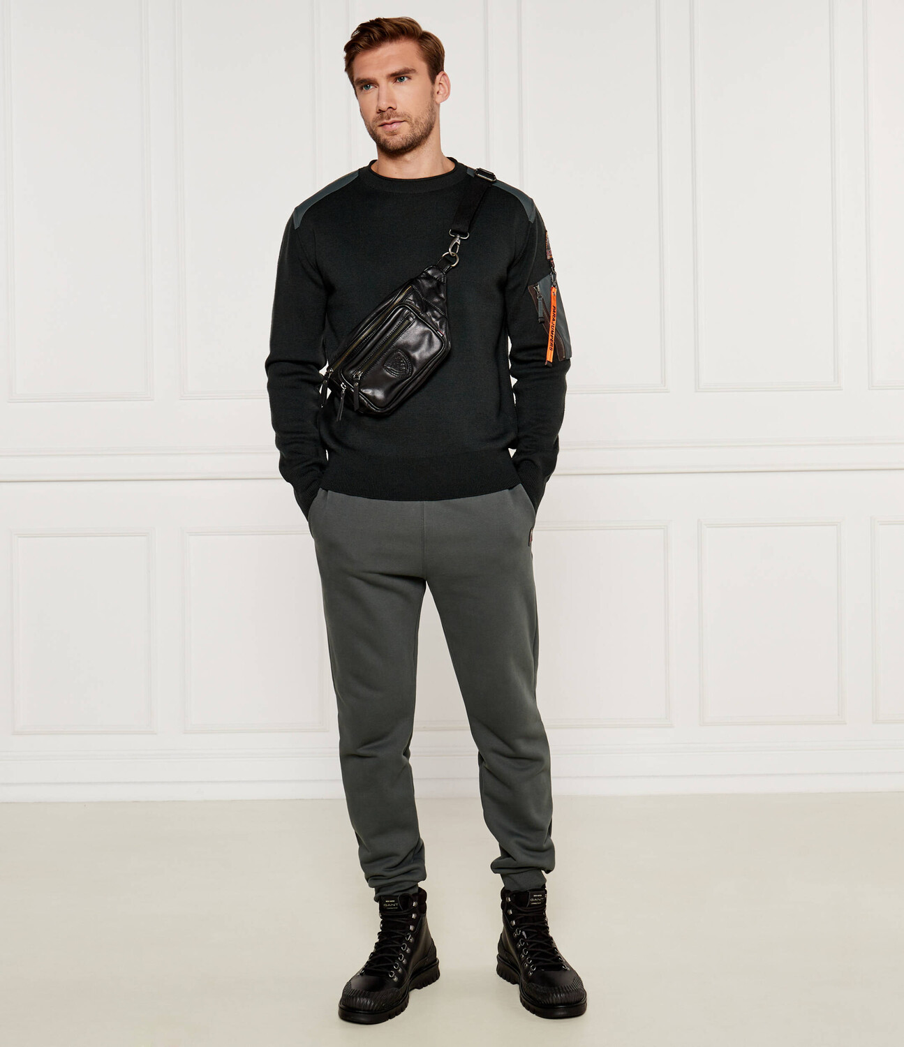 Рост модели 185 см, размер M.