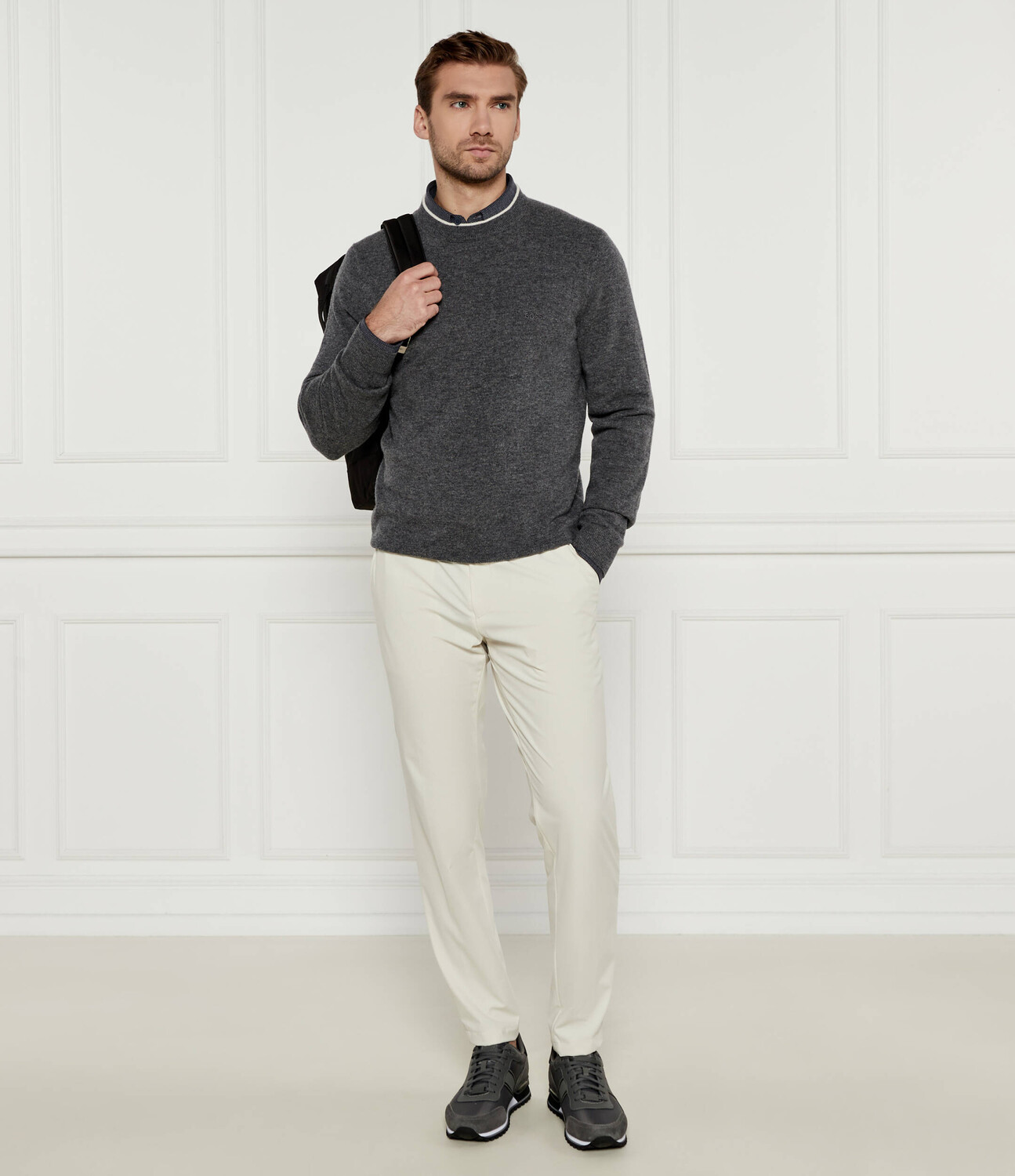 Свитер из шерсти BOSS BLACK Ebacio Regular Fit, серый 11 120₽