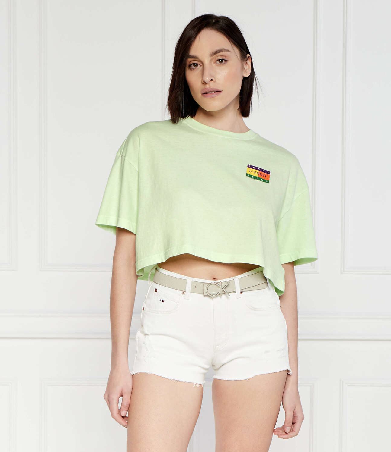 Футболка Tommy Jeans Summer flag Cropped Fit, лаймовый