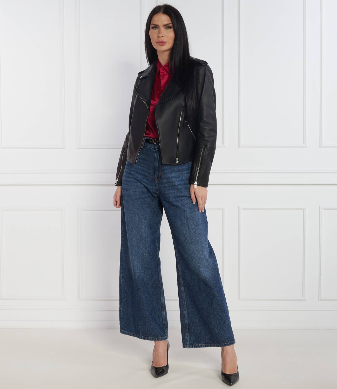 Кожаная куртка HUGO di pelle Lujana Slim Fit, черный 35 398₽