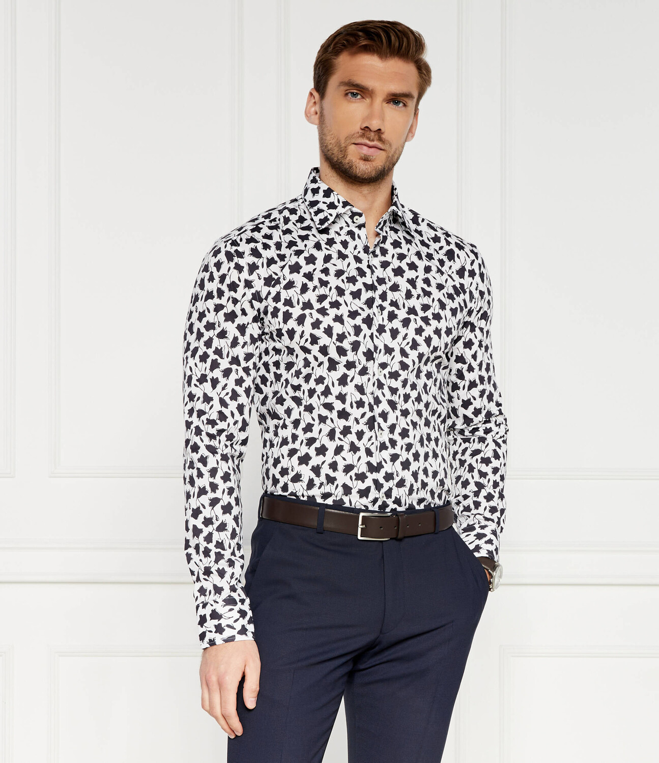 Рубашка BOSS BLACK H-HANK-kent-C1-214 Slim Fit stretch, темно-синий 10 744₽