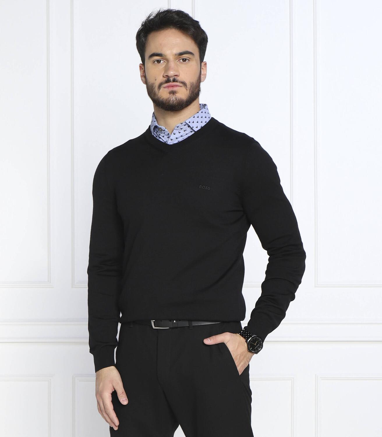 Свитер из шерсти BOSS BLACK baram-l regular fit, черный
