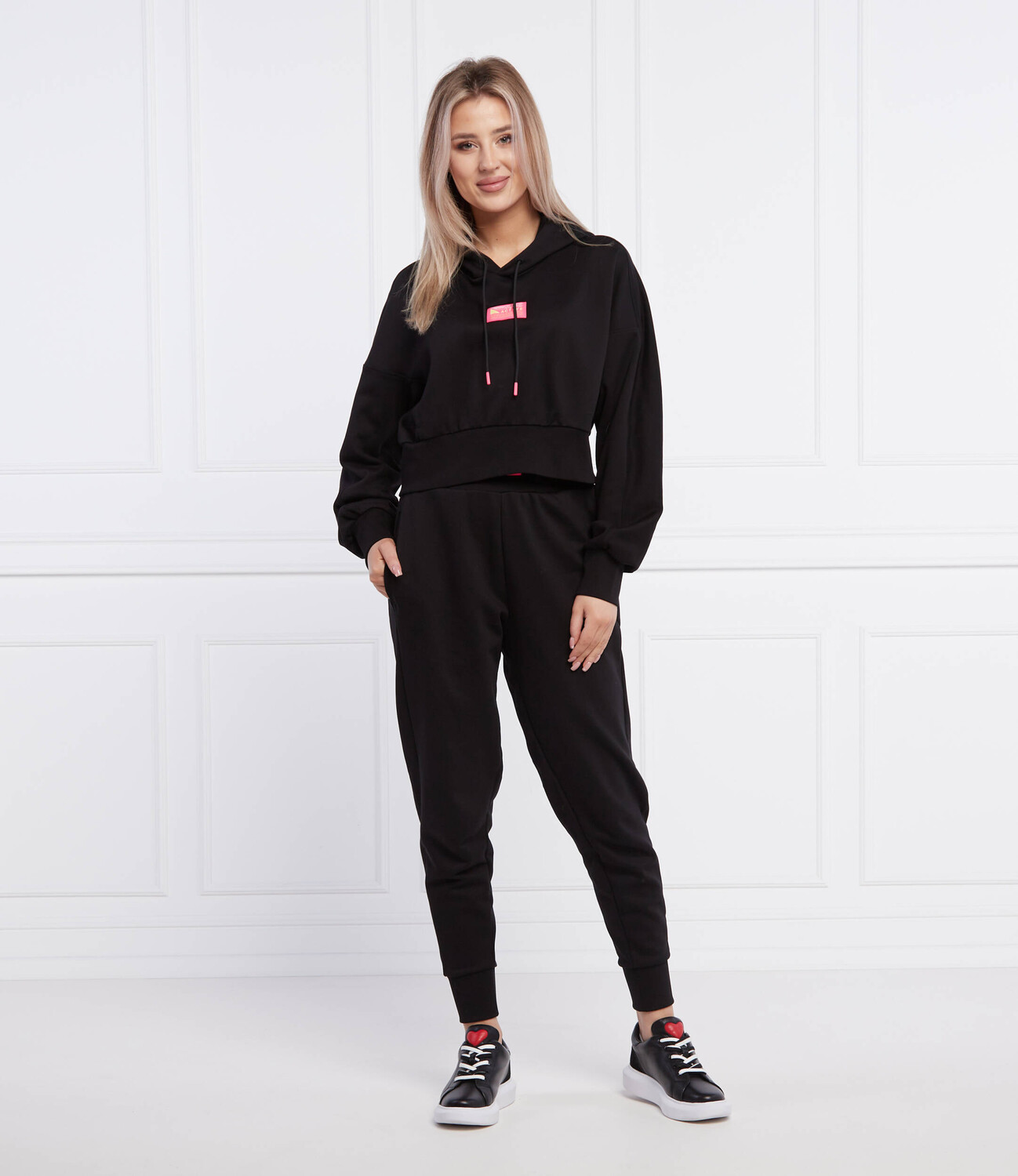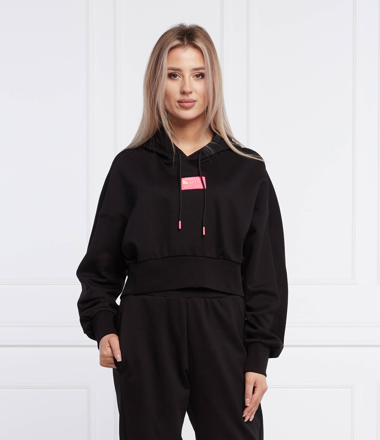 Толстовка HUGO diametta cropped fit, черный