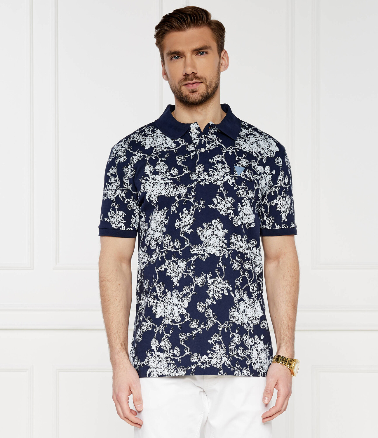 Поло GUESS SS AOP OVERDYE Regular Fit, темно-синий